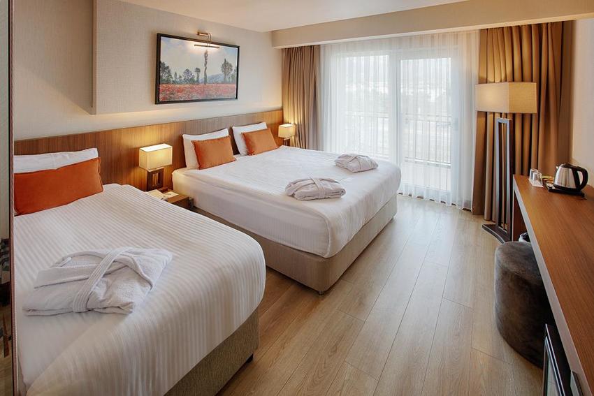 Kazdağları Allia Thermal & Spa Otelimiz Kaz Dağı’nın eteklerinde konumlandırılmıştır. Dünyada Alp dağlarından sonra gelen Kaz Dağları, oksijen oranı bakımından 2. Sıradadır. Deneyimli kadrosu ve aktivite çeşitliliği ile size bambaşka bir tatil anlayışı sunar. Bedensel ve ruhsal rahatlamanın, metropol hayatının getirdiği stres ve yorgunluktan arınabilmenin yollarını yaratır. Kendinize zaman ayırabileceğiniz, kendinizi keşfedebileceğiniz bu farklı coğrafyada siz de yerinizi alın. Kendine ait plajında, sıcak bir güneşin, huzurlu ve keyifli bir tatilin tadını çıkarın. Termal Otelimizde engelli dostu oda bulunmaktadır.